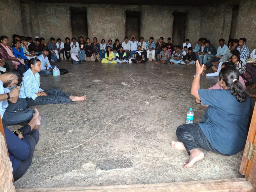 Continuing our Historical Ideological Journey campaign, we have till date gone on tour with hundreds of children, adolescents, youth and women to these ancient sites of Indian history.. a history that is rich with learning, intellectual leadership, scientific thinking, environmental closeness, architectural and engineering marvels. This kind of immersive on-site experience, is not just a matter of learning for these youth from Nomadic Adivasi backgrounds, but a matter of historical awakening. Because their ancestors built these caves and in many cases, their elders continue to take care of them and are the only ones who are even aware of their existence as having ancient legacy.