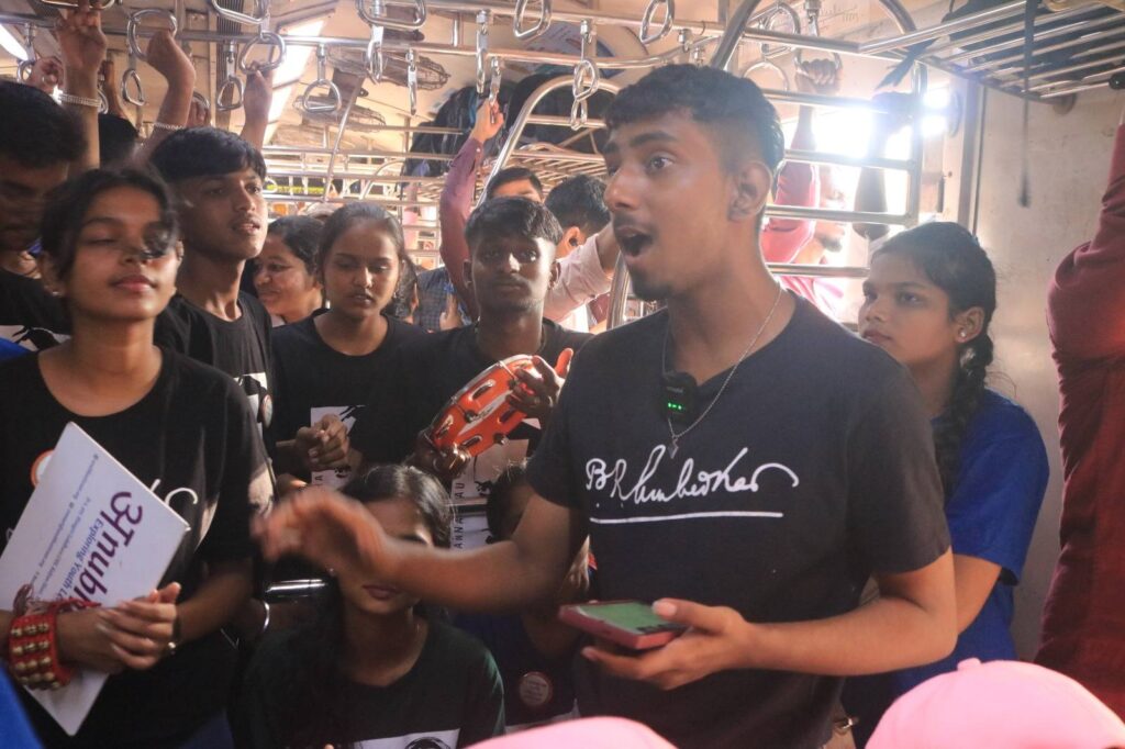 Adolescent and Youth leaders of the Badlache Parv Kala Manch reached over 1000 local train travelers in a day-long campaign!